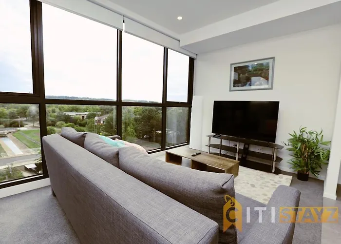 이 70m^2 아파트는 캔버라, 연방수도특별구 공항에서 15km 떨어져 있습니다.